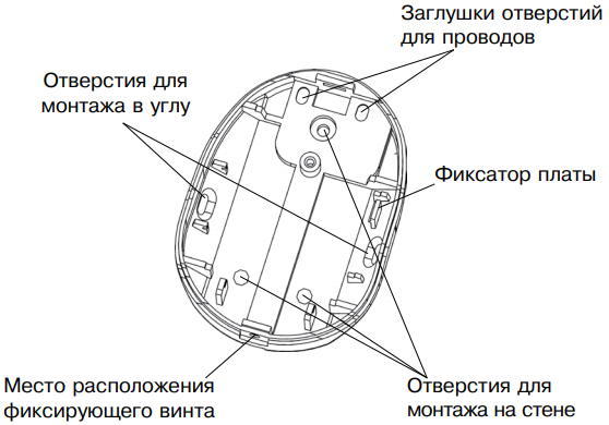 Извещатель может устанавливаться непосредственно на стену или в углу помещения.